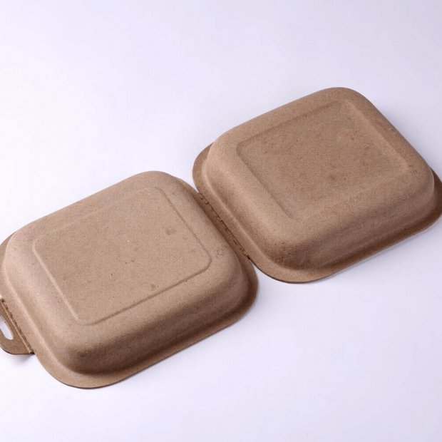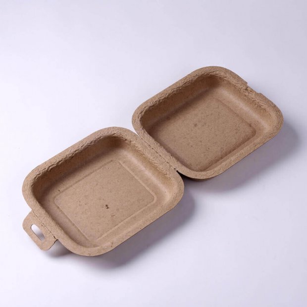 This molded pulp box is made from recycled corrugated paper pulp. Its biodegradable and recyclable.